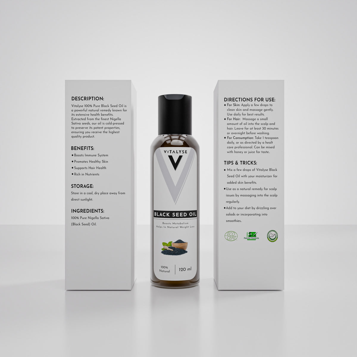 - Is it safe to ingest Vitalyse Black Seed Oil? Yes indeed! Our black seed oil is completely safe for consumption as it is cold pressed and free from any chemicals. Perfect, for oral intake.\n